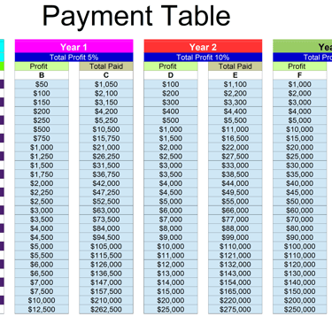 select the Yearly Payment from ( column A ) in the Payment Table below and Deposit this amount into Income Builder ...